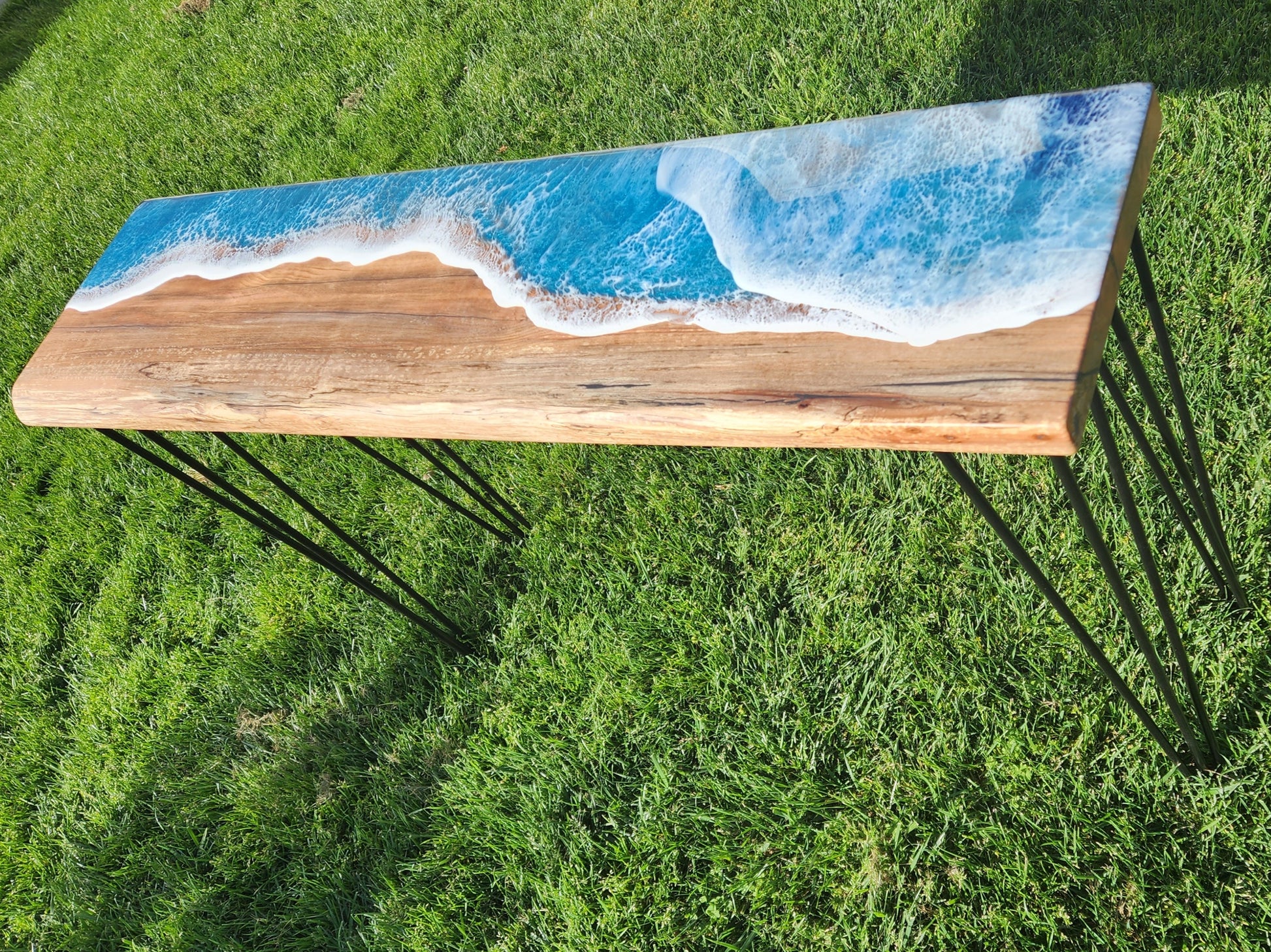 Tiger Myrtle Hall Way Table with Resin Double Wave